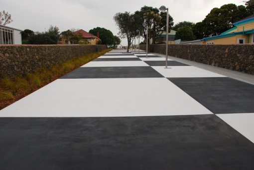 Billy Apple's Waipero Swamp Walk opened to the public last weekend. Utilising the golden ratio and two famous sports colours – black (rugby) & white (cricket) – Apple has created a visually striking walkway to the Eden Park Stadium, one of the venues for the 2011 Rugby World Cup.