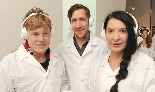 Marina Abramovic staged a high-concept event at Sundance in honour of the documentary Marina Abramovic: The Artist is Present. All guests wore white lab coats, noise cancelling headphones and (echoing the artist's silence during her MoMA retrospective performance) were forbidden to talk for an hour. Robert Redford, who spent an entire day at the MoMA show, called the event “fabulous”.