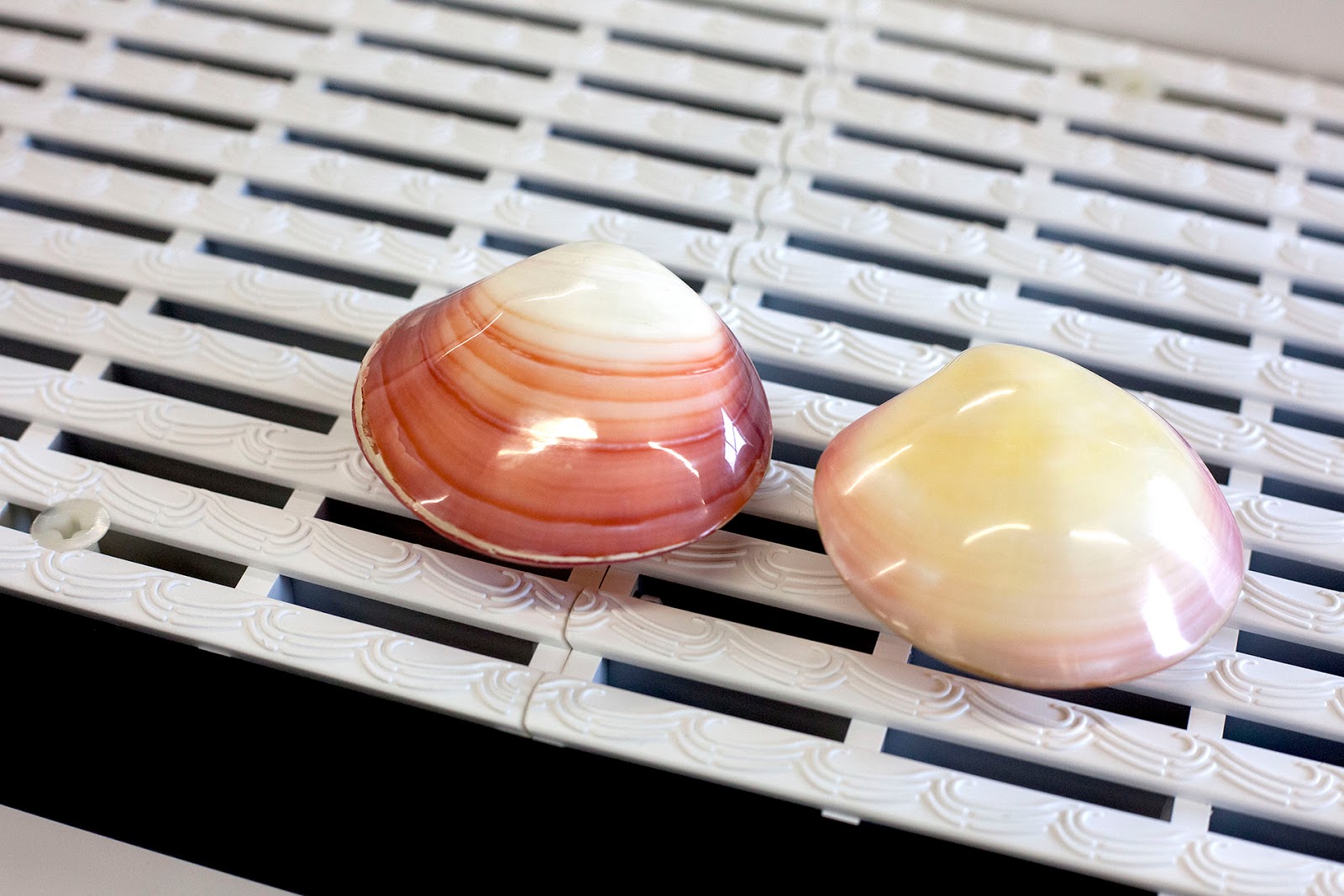 Image: Alicia Frankovich, Soft Water (detail) 2015, Olympic swimming pool steps and polished shells