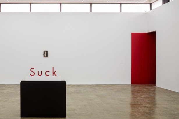 First up was SUCK, the first section of a two-part exhibition, Poetry in Motion, curated by Artspace director Misal Adnan Yildiz. Featuring a Suck sculpture and four small off-set lithographs on canvas of men with erections, perfectly centered on each wall, the exhibition transitioned into Poetry in Motion, a group show with with a lineup of artists including Billy Apple®, Art & Language, Bruce Barber, Yoko Ono, Martha Rosler and Laurence Weiner. This link takes you to a review of SUCK.