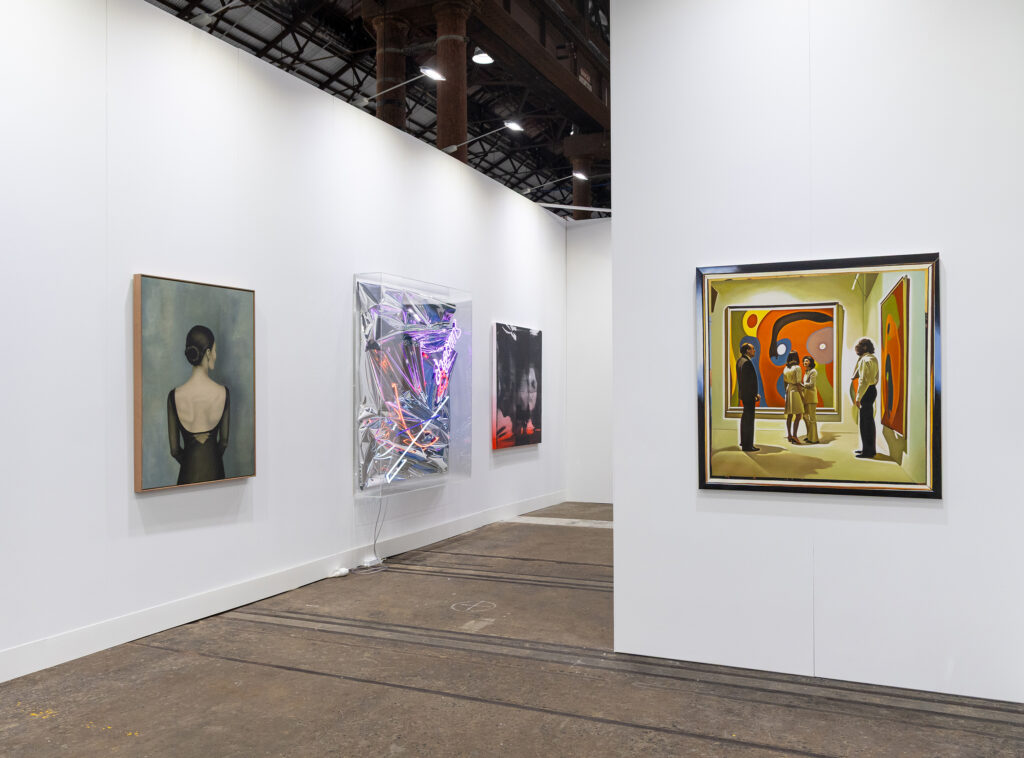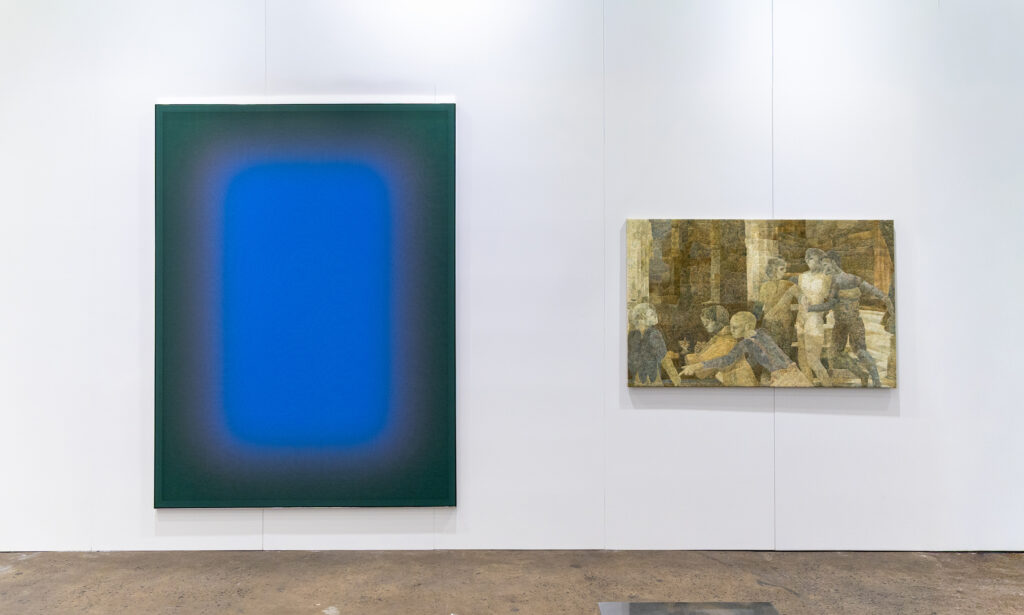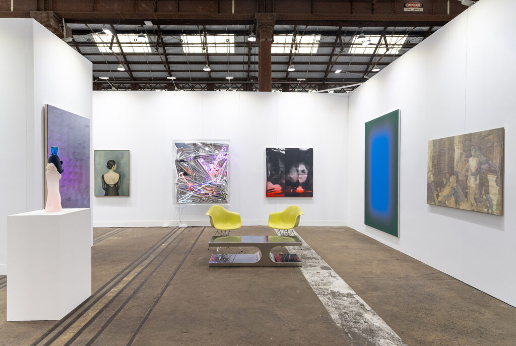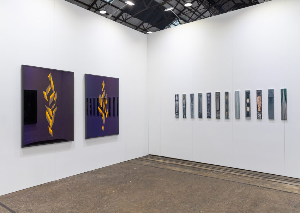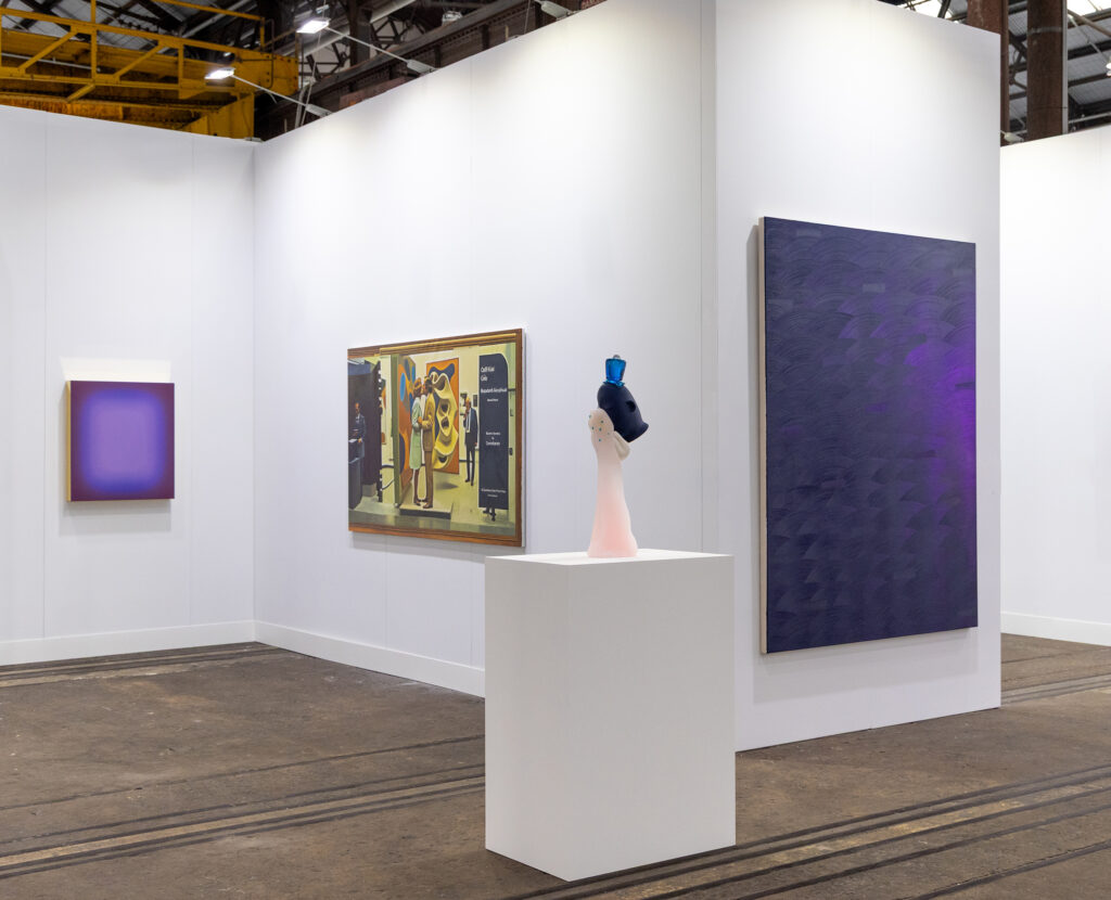 As a part of the fair, Installation Contemporary presents major artworks beyond the gallery booth, engaging with the distinctive architecture and atmosphere of Carriageworks. For this year’s Installation Contemporary, 1301SW and STARKWHITE present a major new work by Jonny Niesche, Sound and Vision (Reflect what you are, in case you don’t know) (2025). Building on recent collaborations with Mark Pritchard, these installations utilise low-frequency sound and vibration to subtly activate the body and space, creating a synesthetic encounter with Niesche’s paintings.