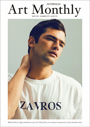 Art Monthly also contains a 6-page spread on Zavros by QAG|GOMA curator Peter McKay on the artist's new interest in photography and performance where he acts as director working with models, commercial photographers, lighting technicians and make-up artists. McKay also covers Zavros' first foray into performance presented by starkwhite (with Rolls Royce) at the 2014 Melbourne Art Fair. Zavros worked with Australia's superstar models the Stenmark twins, a Rolls Royce Wraith, and an endless supply of MZ-monogrammed chocolates offered as gifts to guests at the vernissage.