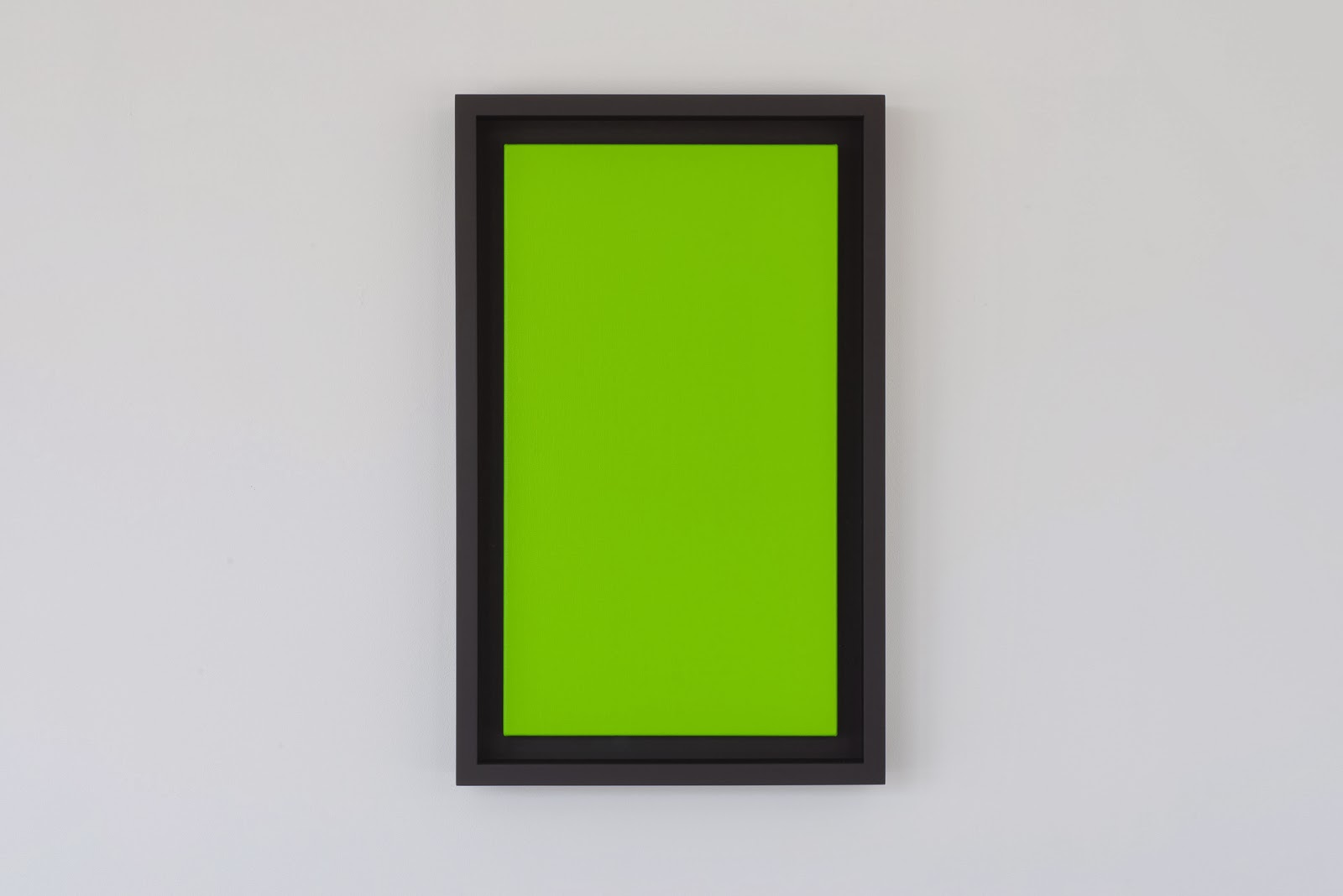 Image: Matt Henry, Untitled (Vanadium Green) from the series 19:9, 2013, Acrylic on linen, frame, acrylic glazing, 510 x 820 x 76 mm