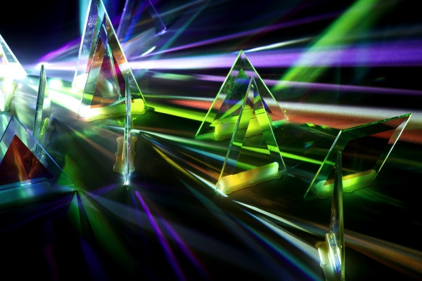 Image: Ross Manning, Dichroic Filter Piece (extended projection), 2012. Dichroic filters, cut glass, dvd player, projector