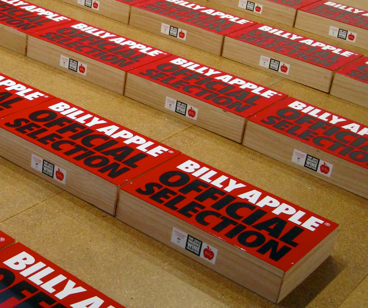 Billy Apple®: Official Selection is showing at the Waiheke Community Art Gallery to 15 October. The exhibition includes a survey of Apple's earlier wine works and is accompanied by a publication with a short essay by art critic and Waiheke resident Anthony Byrt.