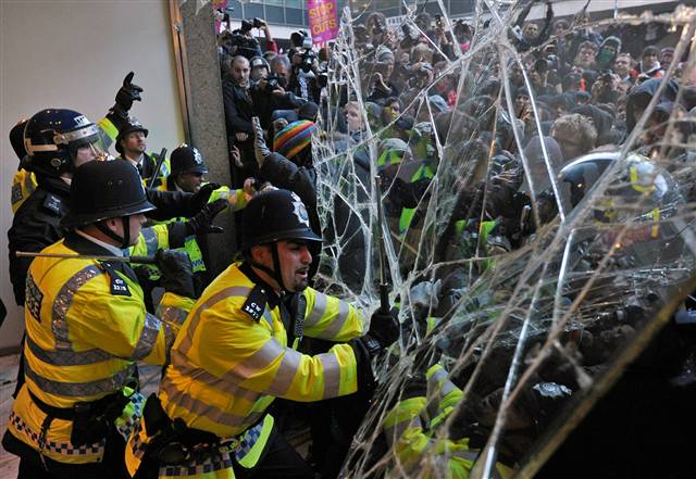 For months, students in the UK have been protesting the coalition government's attempt to raise annual tuition fees at universities. Now a coalition of more than 90 artists, musicians and creative figures have come together to make a statement of solidarity with young protesters and to offer cash to pay fines for civil disobedience convictions. The coalition list includes Damien Hirst, Marc Quinn and Rachel Whiteread; Clash's Mick Jones, Primal Scream frontman Bobby Gillespie, and Duran Duran keyboardist Nick Rhodes; and fashion designer Stella McCartney.