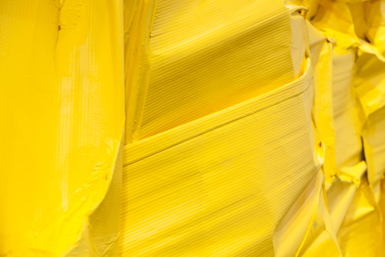 Image: Richard Maloy, Yellow Structure 2016 (detail), cardboard, tape and acrylic paint, dimensions variable.